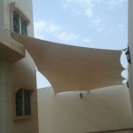 مظلات الشد الانشائي للفيلا يمكنك تثبيت المظلات من جدار الفيلا الى جدار الحوش بدون أعمدة أو إطار حديدي في منتصف السياج ، فقط ضيقة من الجانبين.